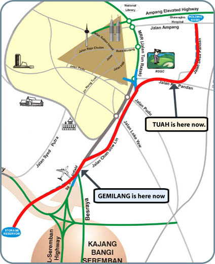 KL-Seremban dan pusat bandar, yang di bawah