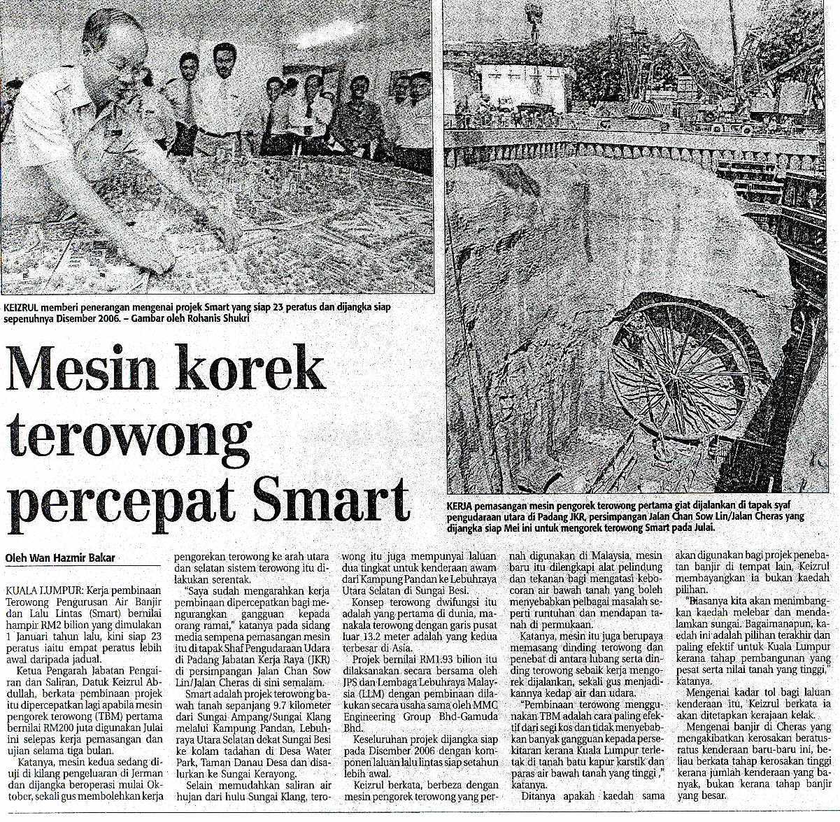Dua mesin pengorek terowong konkrit SMART