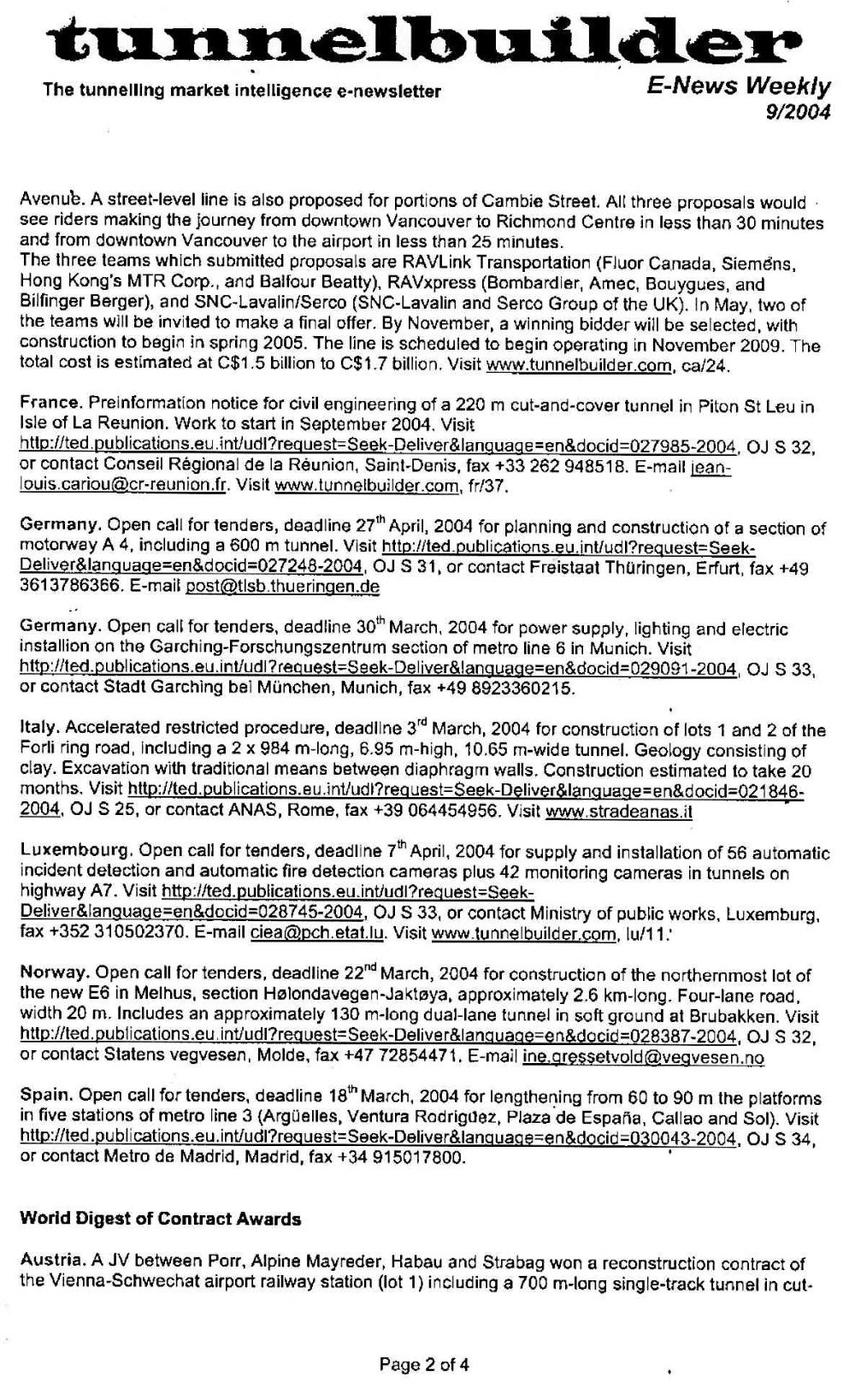 World Digest of Ongoing Tunneling
