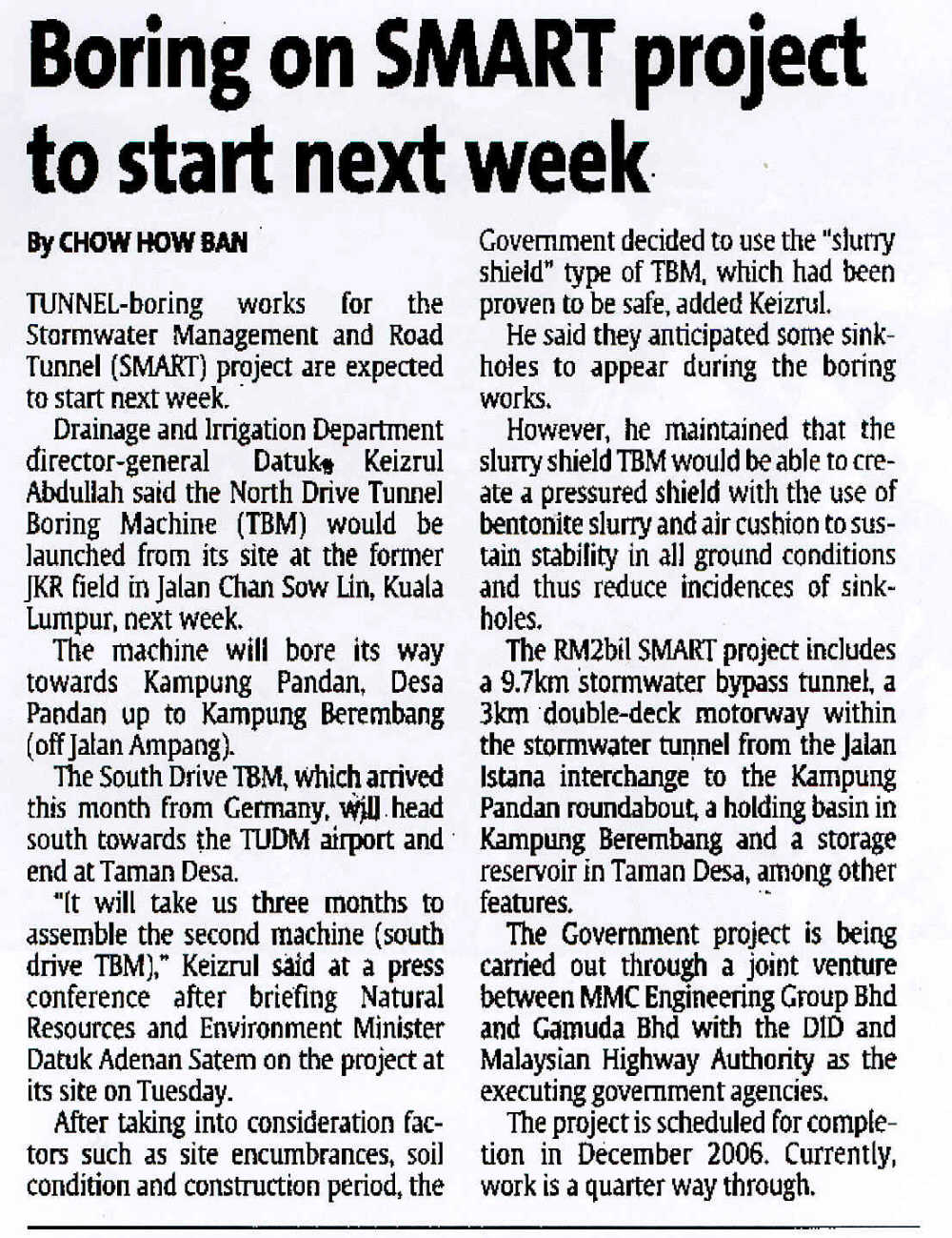 Boring SMART project to start next week