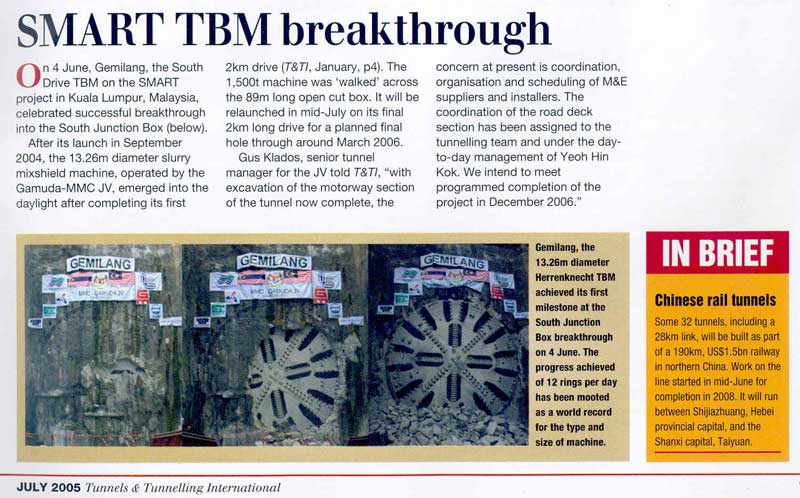 SMART TBM Breakthrough - Tunnel & Tunnelling International July 2005