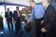 | Dato’ Seri S. Samy Vellu, Minister of Work together with Dato’ Seri Azmi Khalid, Minister of Natural Resources and Environment officiating the opening of SMART Highway. Also present were directors of SMART, Dato’ Ir. Haji Azmi Mat Nor (left) and Dato’ Ir. Haji Ahmad Zaidee Laidin (right). |